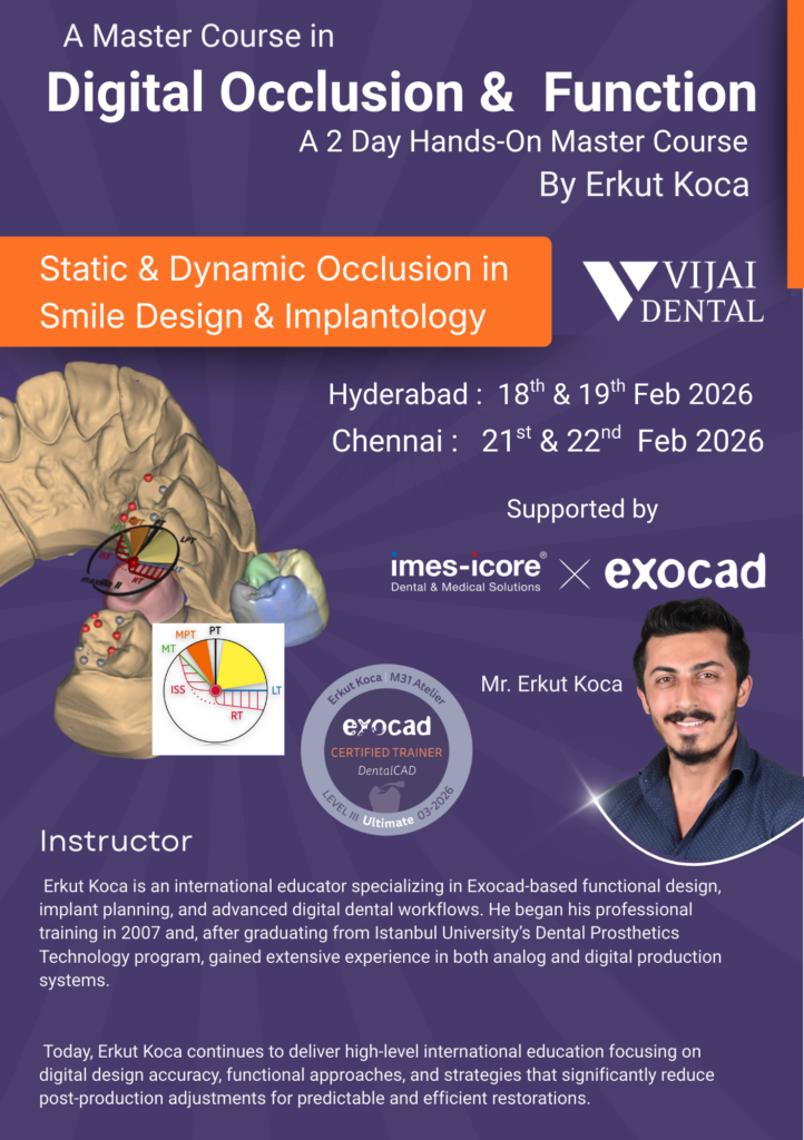 - Practical design exercises on Crowns, Bridges, Wax-ups, Custom Abutments, All-on-X, and Smile Design indications