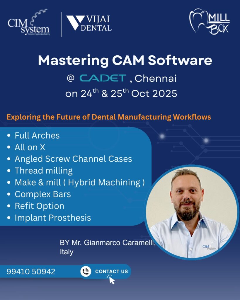B. Shinil C.D.T., is a technical trainer in CADET, Chennai, he conducts demonstrations, practical workshop on PFM, all Ceramic, Lab Composites, Precision Attachments, Cast Partials and Implant restorations and CAD-CAM in exocad software to dental institutions, private laboratories and in-house training in our center. Been also specialized in welding, Vacuum Pressure Casting and Implant Milling. Does high class, precise implant prosthetic works for dentist who demand high standards.